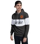 * 7.6 ounce 55% polyester/41% cotton/4% rayon, super soft fleece * Woven label * Exterior faux leather logo loop label * Jersey lined hood with metal tipped drawcord (sizes S-3XL only) * Set-in sleeves * Side seam pockets * Spandex blend rib-knit cuffs and bottom hem